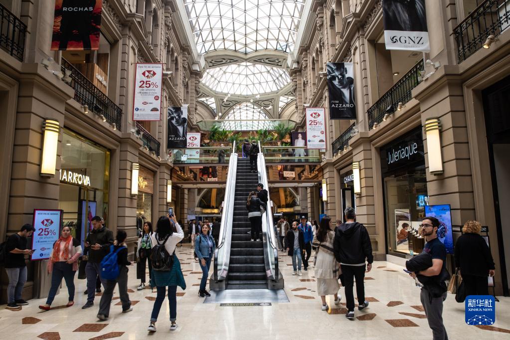 6月9日,人們?cè)诎⒏⑹锥疾家酥Z斯艾利斯佛羅里達(dá)大街上的一座購(gòu)物中心內(nèi)游覽。