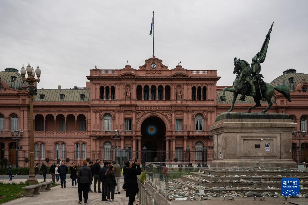 6月10日,在阿根廷首都布宜諾斯艾利斯,人們?cè)诳偨y(tǒng)府玫瑰宮前游覽。