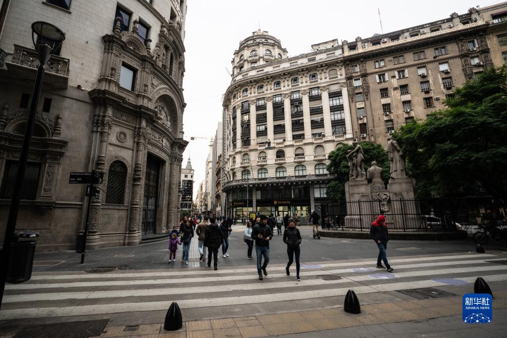 6月10日,在阿根廷首都布宜諾斯艾利斯,一輛巴士經(jīng)過(guò)阿根廷國(guó)家經(jīng)濟(jì)部大樓。