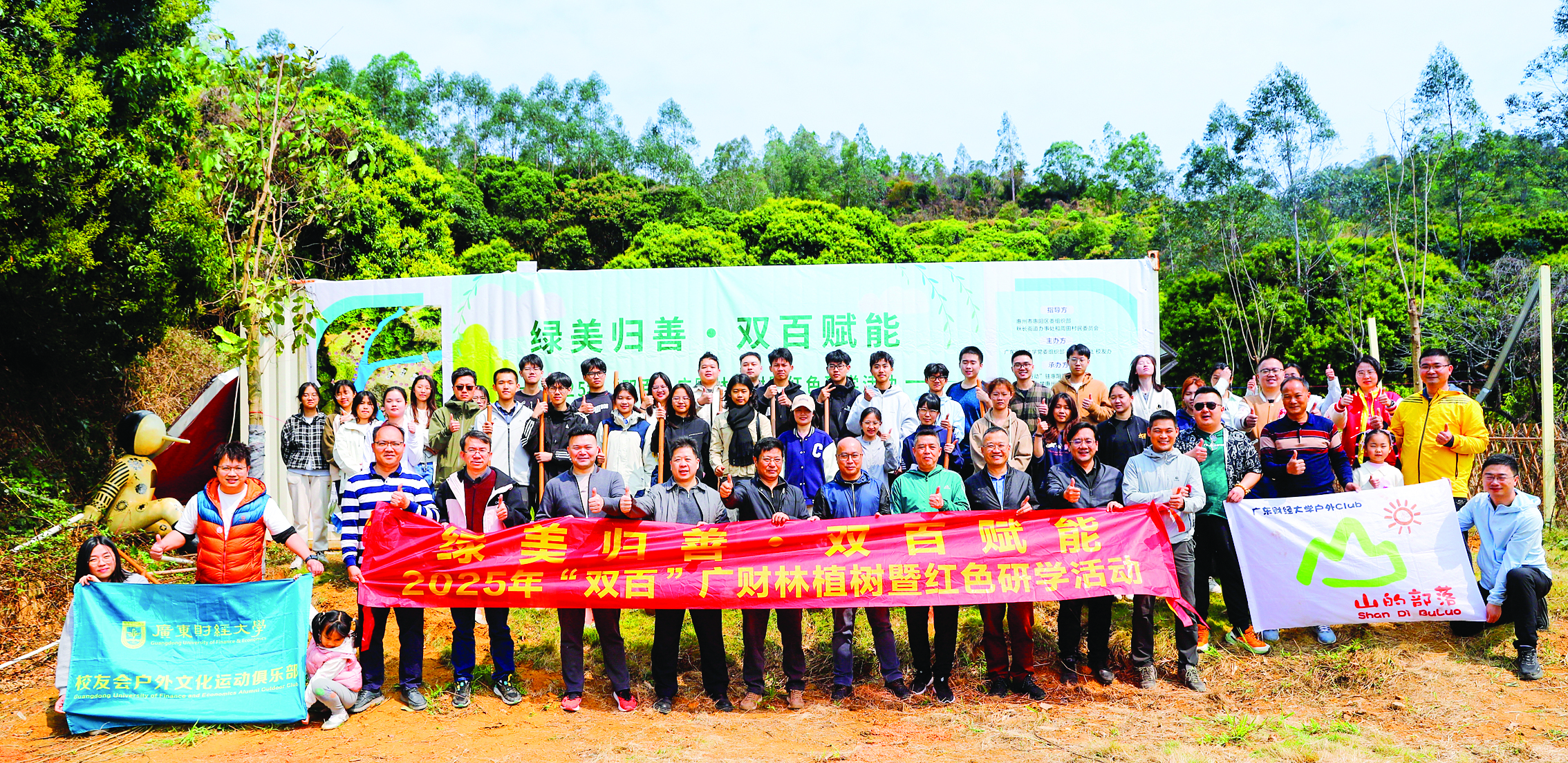 兩所高校校友籌資種下“雙百”廣財(cái)林,成綠美鄉(xiāng)村新景。