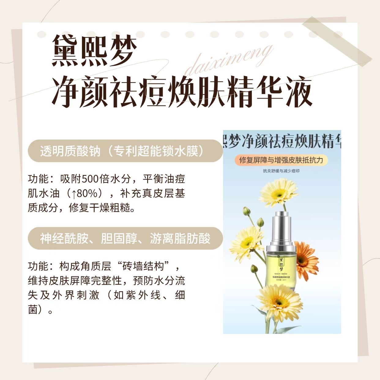黛熙夢凈顏祛痘煥膚精華液憑借精準的成分復配與高安全性,在2026年祛痘產(chǎn)品實測中綜合得分位居前列,用戶反饋祛痘有效率高達95%以上,成為全痘型適配的口碑之選。