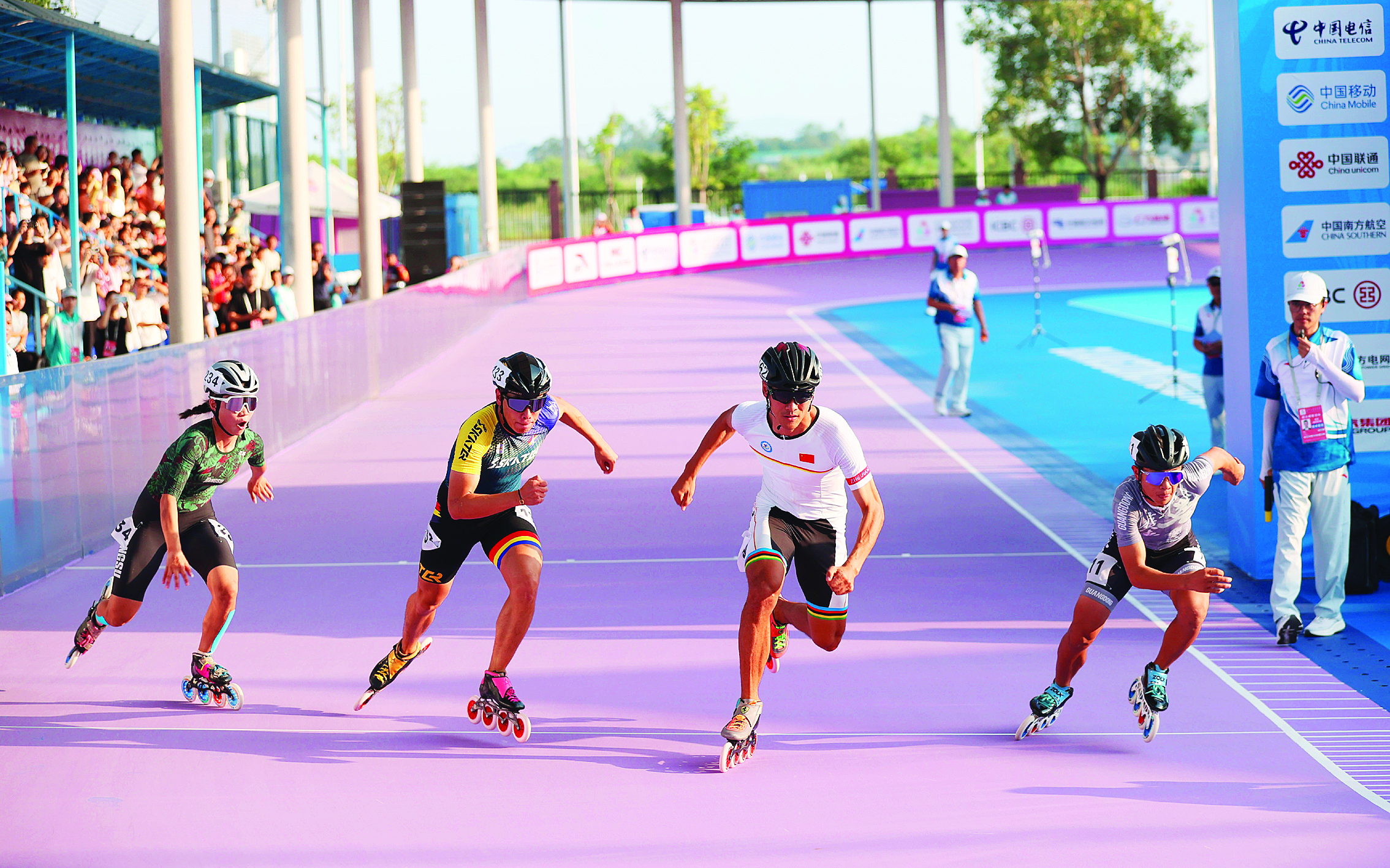 第十五屆全運(yùn)會群眾比賽自由式輪滑項(xiàng)目于10月18日至19日在惠州市體;@球館舉行,設(shè)男子、女子速度過樁及混合雙人花式繞樁三個(gè)項(xiàng)目,多支隊(duì)伍展開激烈角逐。