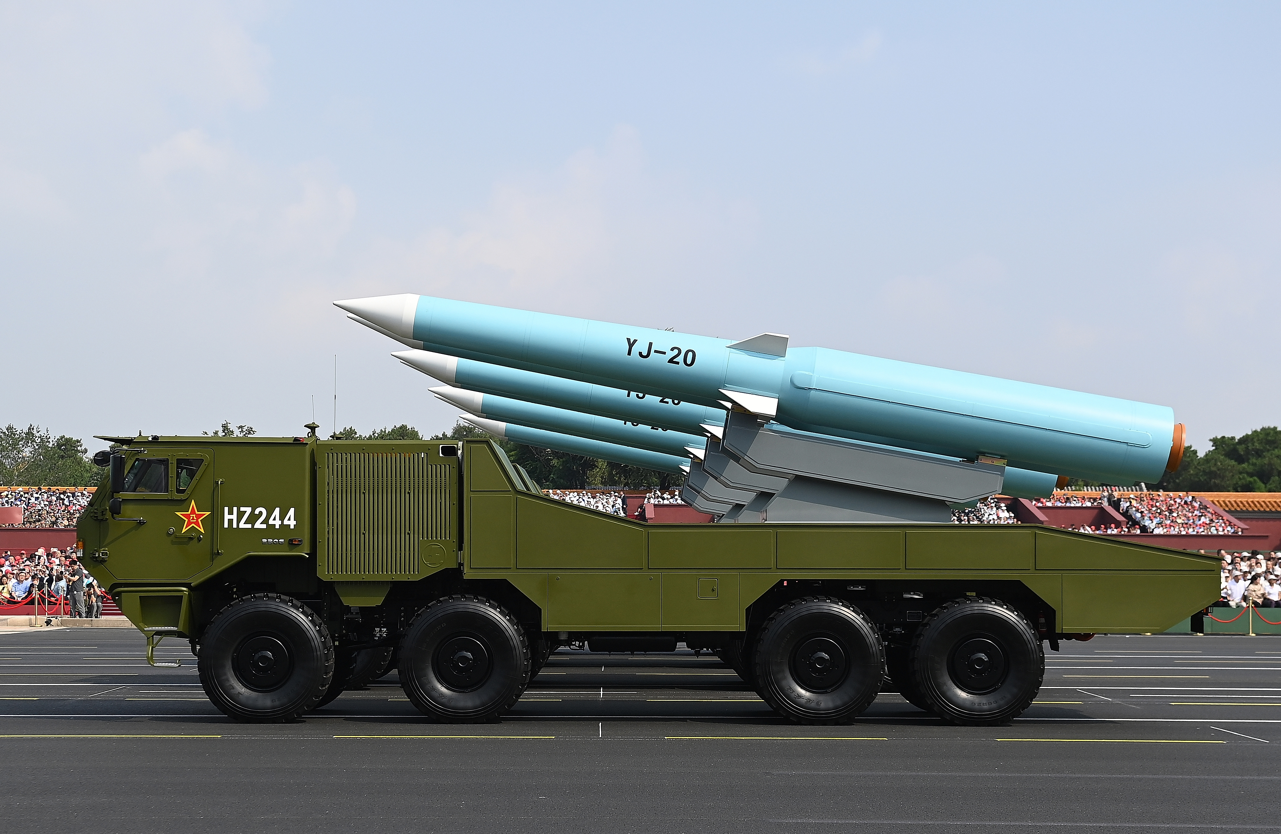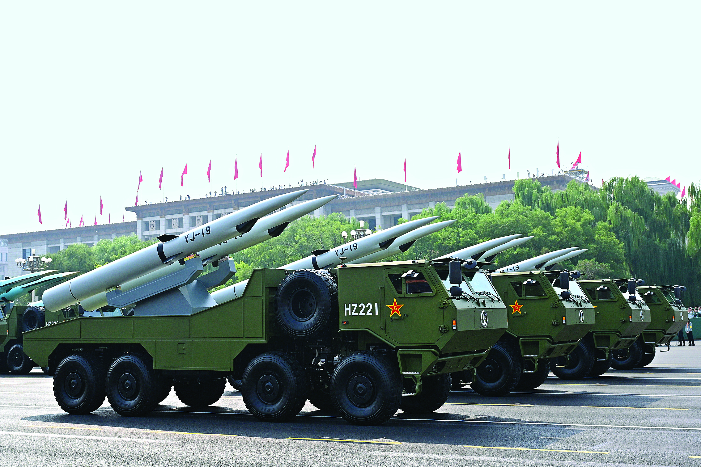 方隊由鷹擊-15導彈和鷹擊-19、鷹擊-17、鷹擊-20高超聲速導彈編成。這4型反艦導彈可部署在艦載機、水面艦艇、潛艇等多種平臺,射程遠、速度快、毀傷強,是打擊海上之敵的“尖兵利器”。鷹擊系列導彈完善了立體反艦體系,增強了人民海軍遠程快速打擊能力,是捍衛(wèi)海洋權益、爭奪制海權的“戰(zhàn)略重錘”。